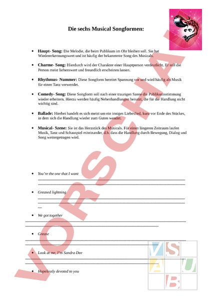 Arbeitsblatt Musicalsongformen Grease Musik Musikgschichte