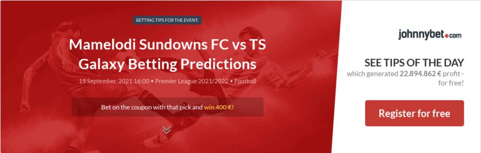 Mamelodi sundowns vs ts galaxy fc prediction. Mamelodi Sundowns vs TS Galaxy for the South Africa Premier check the prediction this game today 20210919. TV streaming details ticket information team news expected line-ups free betting tips prediction. The match is a part of the DStv Premiership.