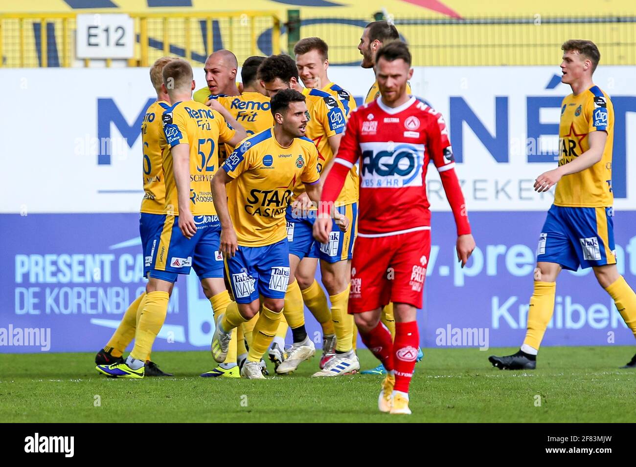 Beveren Netherlands April 11 Michael Frey Of Waasland Beveren Celebrates His Score During The Pro League Match Between Waasland Beveren And Kv Kor Stock Photo Alamy