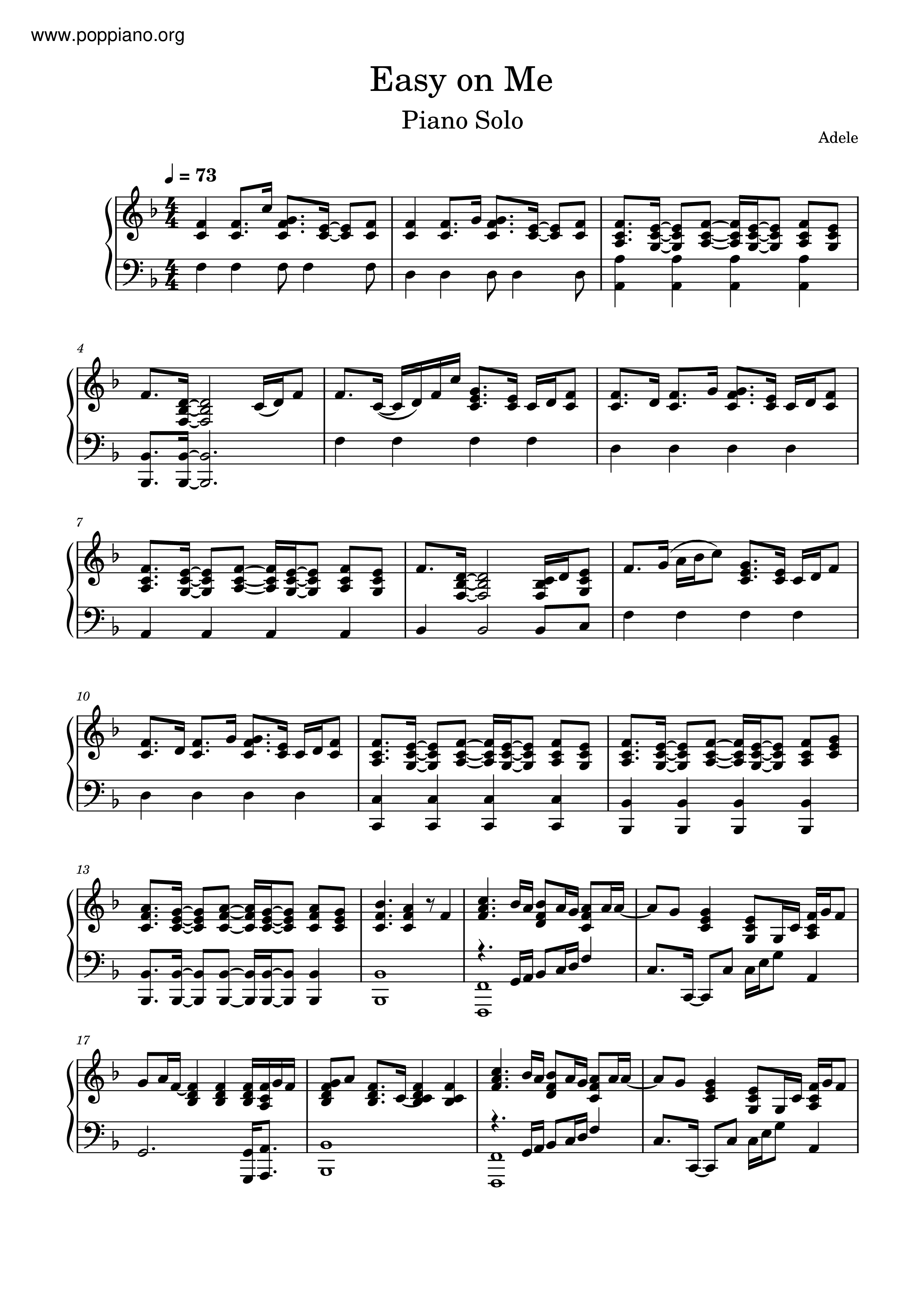 This is the free Easy On Me sheet music first page. Httpsbitly3BPmoTtEasy On Me is a song from Adeles fourth studio album 30 and w. Sheet music arranged for PianoVocalChords in F Major.